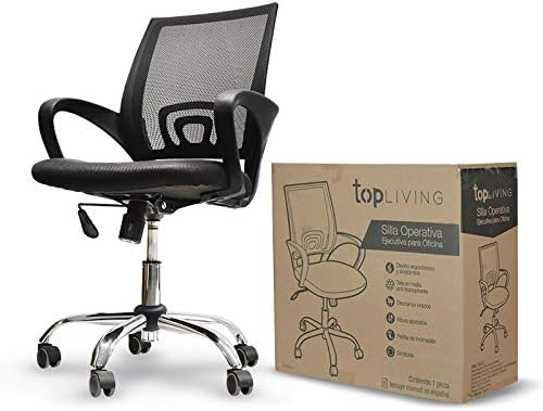 TOPLIVING Silla De Oficina Ergonómica Reclinable con Altura Ajustable Silla Ejecutiva para Escritorio Económica de Gran Calidad Base Cromada con Garantía Color Negro