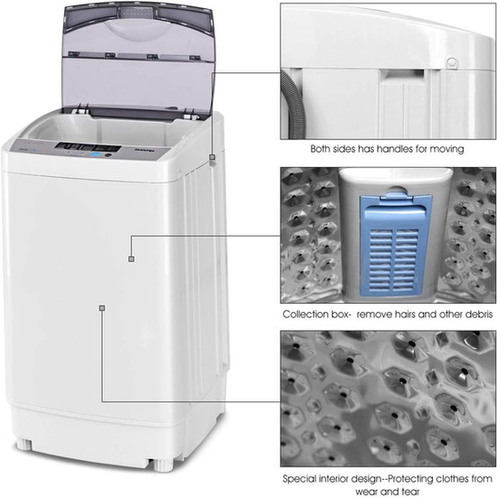 La lavadora Giantex es compacta y ligera para que puedas moverla fácilmente en tu hogar. Pero la tina interior con forma de panal puede cargar 12 libras a la vez y lavar muchas prendas para ti. En manual, también enumeramos el peso de varias prendas para tu referencia.