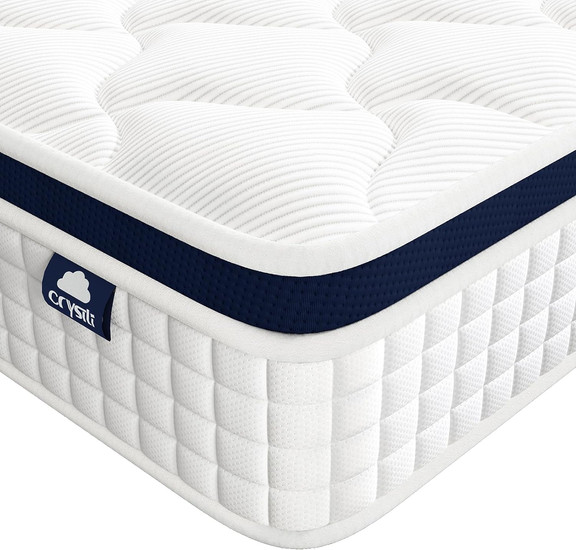 Colchón híbrido Crystli de 10 pulgadas con espuma de presión cero, colchón de muelles interiores con bobinas envueltas individualmente, certificado CertiPUR-US para alivio de presión, firmeza media, cama en una caja